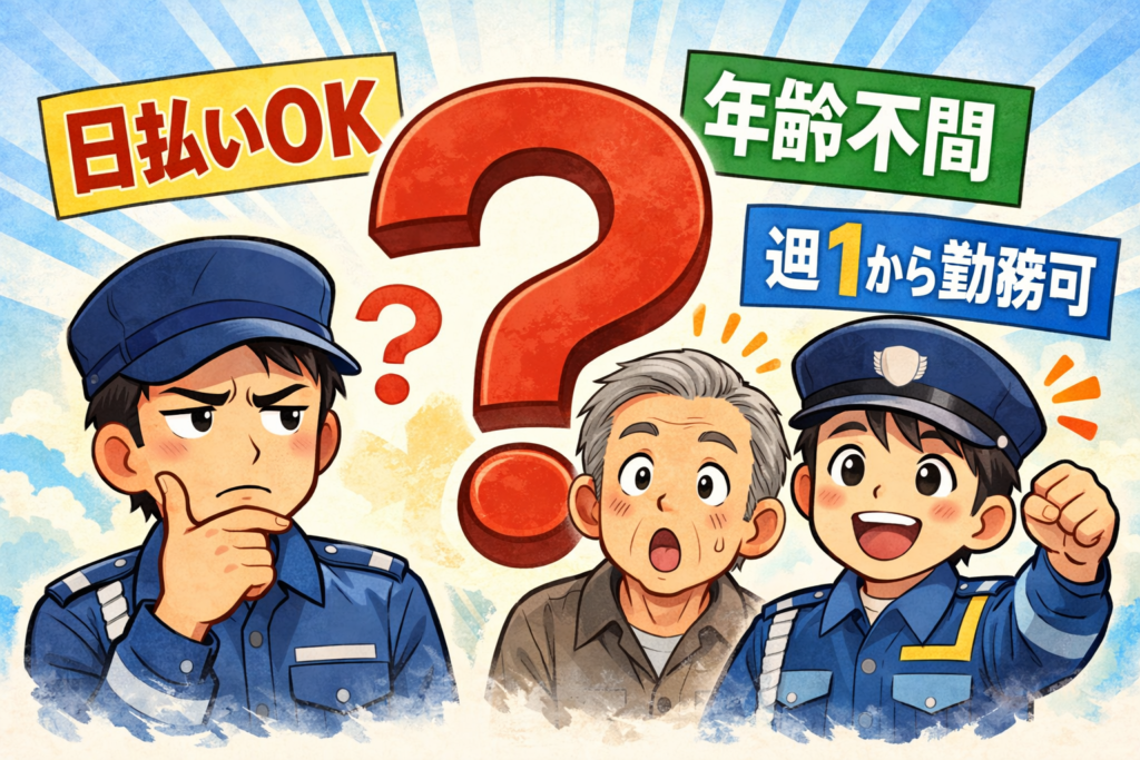 警備員求人の「日払いOK」「年齢不問」「週1から」は本当?実態を現場目線で解説